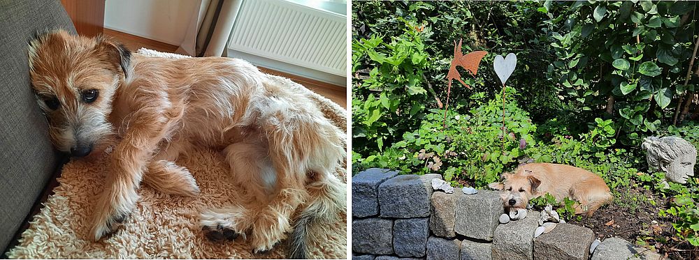 Wir waren trotzdem auf alles gefasst. Und dann kam Phoebe. Ein zauberhaftes Struppelchen. Von Anfang an unglaublich zugewandt, entzückend und lieb. Sie ist ein Herz auf vier Pfoten, freundlich und zart mit allen Menschen und Hunden, die ihr begegnen. Sie war von Anfang an stubenrein und hat sich sehr schnell eingelebt. Sie bleibt nicht gerne alleine (schafft es aber mittlerweile mal 2-3 Stunden-wahrscheinlich auch länger), muss sie aber auch meistens nicht, weil man sie überall wunderbar mitnehmen kann. Im Haus ist sie absolut ruhig und glücklich, wenn es viel Schmusezeit gibt. Draußen freut sie sich über andere Hunde und rennt wie ein kleiner Hase.