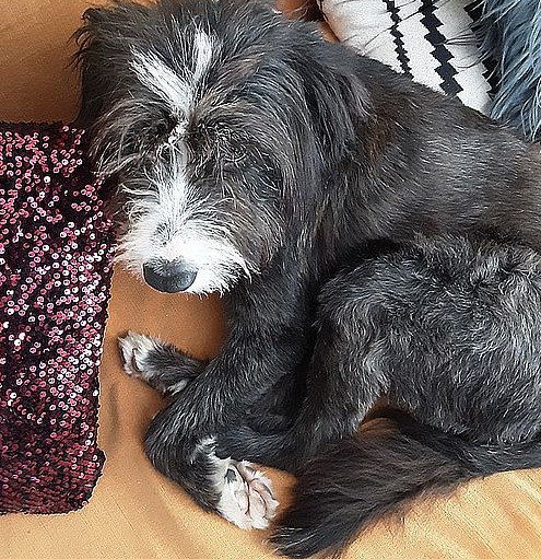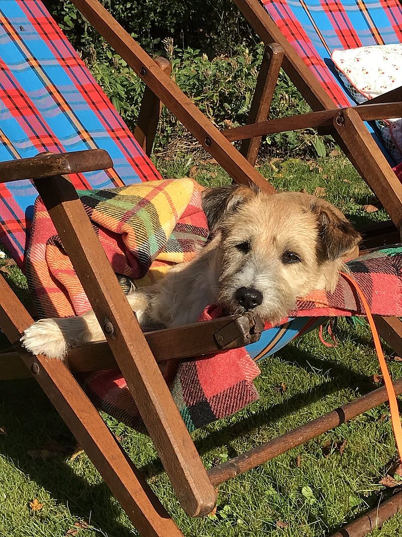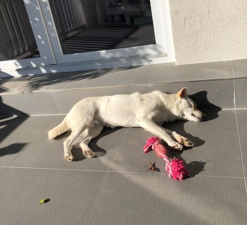 Nach Müllcontainer, drei Jahren Shelter und zwei Jahren Tierschutzfarm in Portugal jetzt wohl das erste richtige Zuhause.